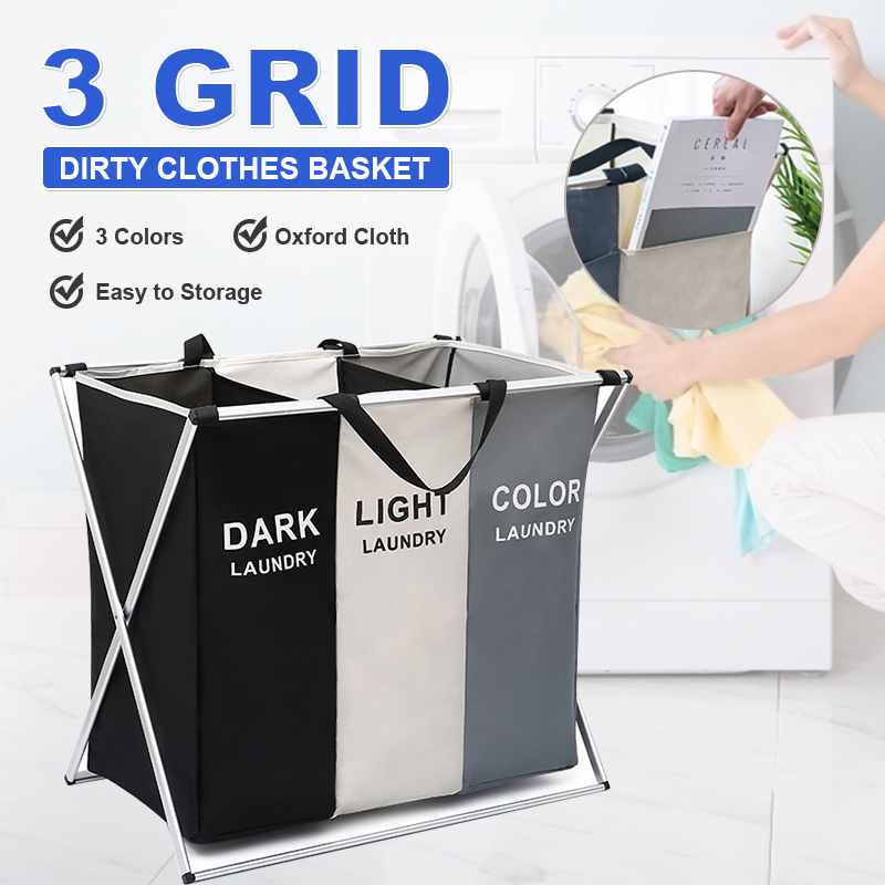 Dirty Clothes Storage Basket Three Grid Organizer Basket Collapsible Large Laundry Hamper Waterproof Home Laundry Basket